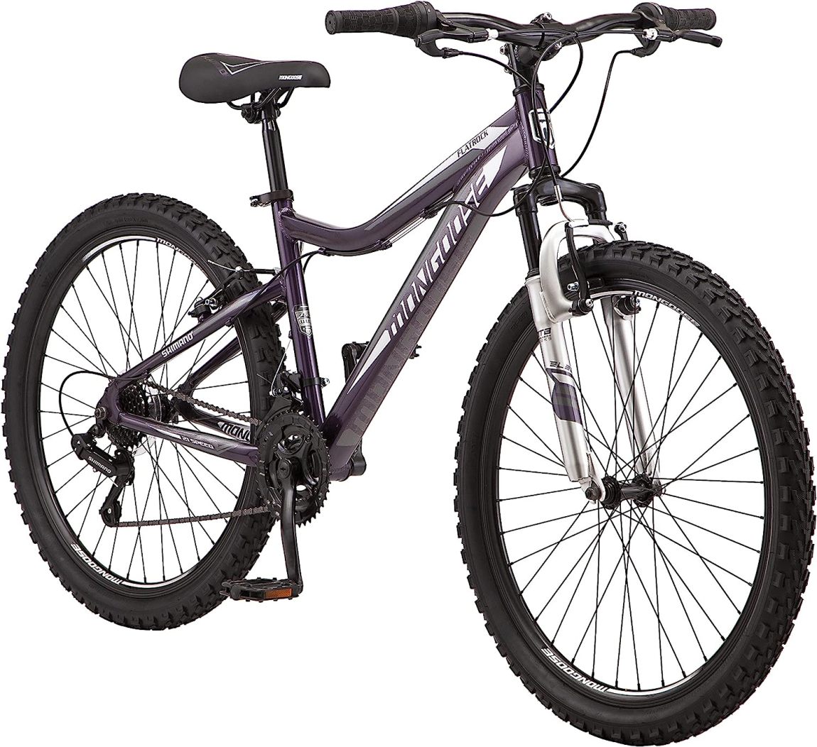 Explore rad new trails with the Flatrock mountain bike by Mongoose. The Flatrock comes equipped with a lightweight aluminum hardtail frame and Element suspension fork that are ready to tear down the trail. 21-speed twist shifters and rear derailleur provide effortless gear changes, while alloy v-brakes deliver reliable stopping power. Plus, double wall alloy rims offer lightweight durability. Get out there and explore with the Mongoose Flatrock.
