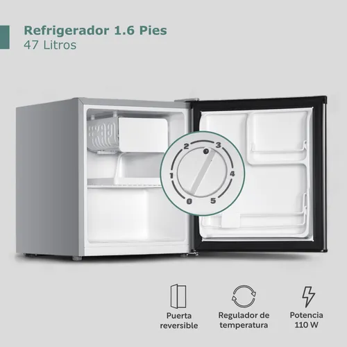 Este refrigerador de 47 litros (1.6 pies cúbicos) es la solución ideal para espacios pequeños como oficinas o estudios. Su rango de temperatura ajustable de 2°C a 8°C mantiene tus alimentos y bebidas siempre frescos, con un diseño práctico y compacto.