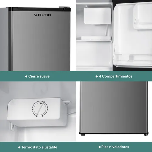 Equipado con un termostato ajustable para que puedas controlar con precisión la temperatura interna. Además, cuenta con 4 compartimientos que ofrecen un espacio organizado para almacenar tus alimentos y bebidas de manera eficiente. El congelador cuenta con un rango de temperatura que va de -6°C a 8°C, lo que te permite almacenar productos congelados y mantenerlos frescos por más tiempo