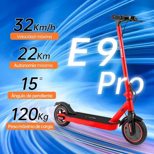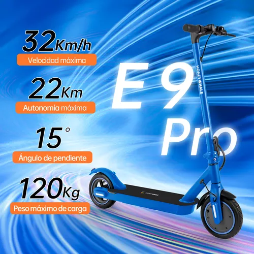 El scooter modelo E9 pro está diseñado con una estructura de aluminio sólido que permite soportar un peso igual o menor a 120 kg.